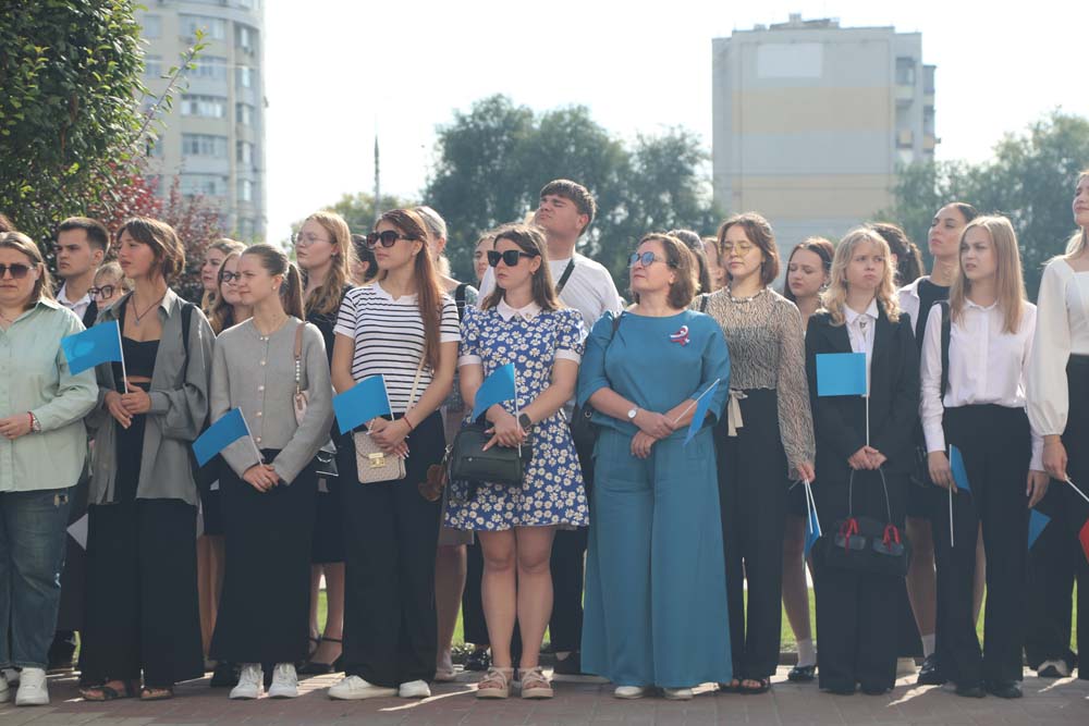 Для торжественного поднятия флага Российской Федерации к флагштоку пригласили студента медицинского института НИУ «БелГУ», участника СВО, ветерана боевых действий Даниила Борисова, бойца-медика 3-й Дубовской роты батальона Стрелецкий-1 Белгородской региональной общественной организации «Сводный оперативный отряд содействия правопорядка» Олесю Хореву и студентку медицинского колледжа НИУ «БелГУ», члена военно-спортивного клуба «Крепость» Лилию Вовк.