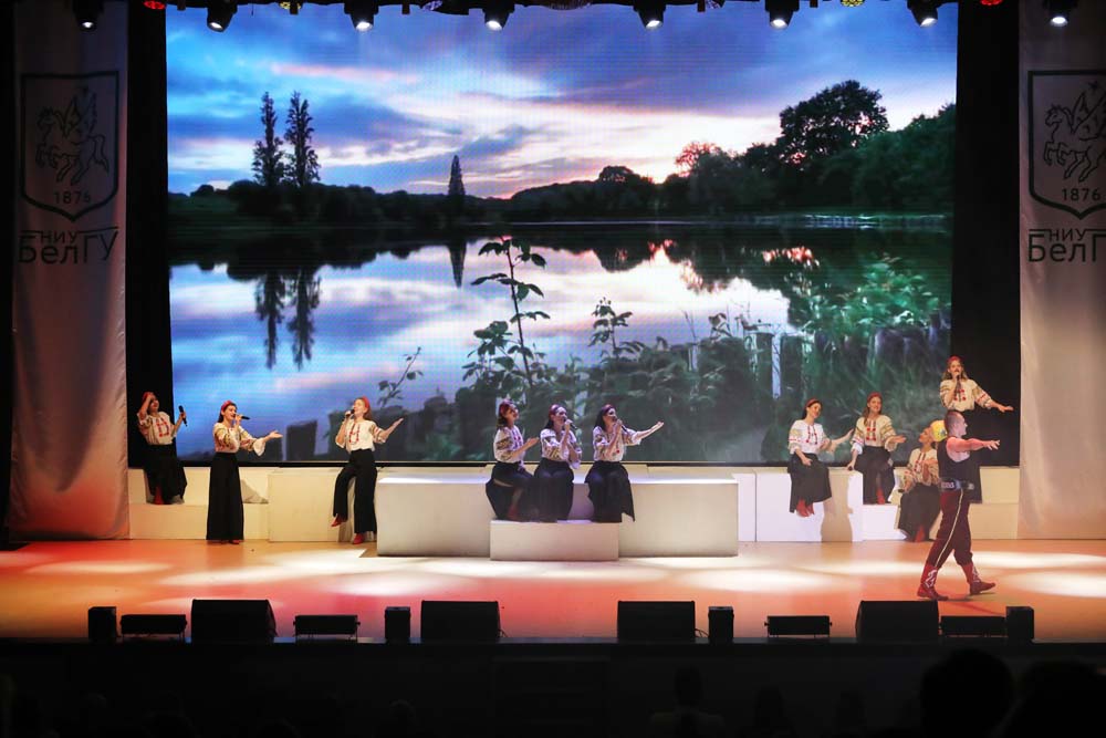 Праздничное настроение создавали выступления творческих коллективов университета – академического хора НИУ «БелГУ», балета «Мариданс», школы-студии «Вереск», студии современного танца «Данс Хаос», коллектива «Арт-Академии», группы «Университет», ансамбля народной песни «Отрада», ансамбля народного танца «Забава», коллектива современного эстрадного танца «Ритм», также приняли участие коллектив свободной пластики «Мел» и творческий коллектив «Школа ведущих».