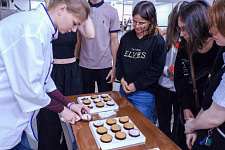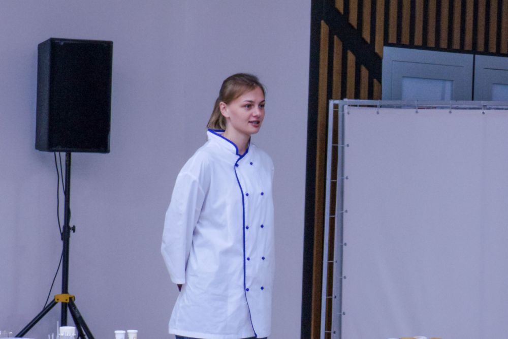 Блок «Вкусная наука» был посвящён безглютеновой выпечке. Студентка кафедры технологии общественного питания Екатерина Зыбина провела дегустацию безглютеновых кексов и доказала, что полезное может быть очень вкусным.