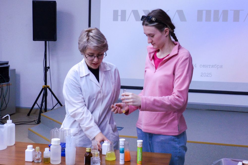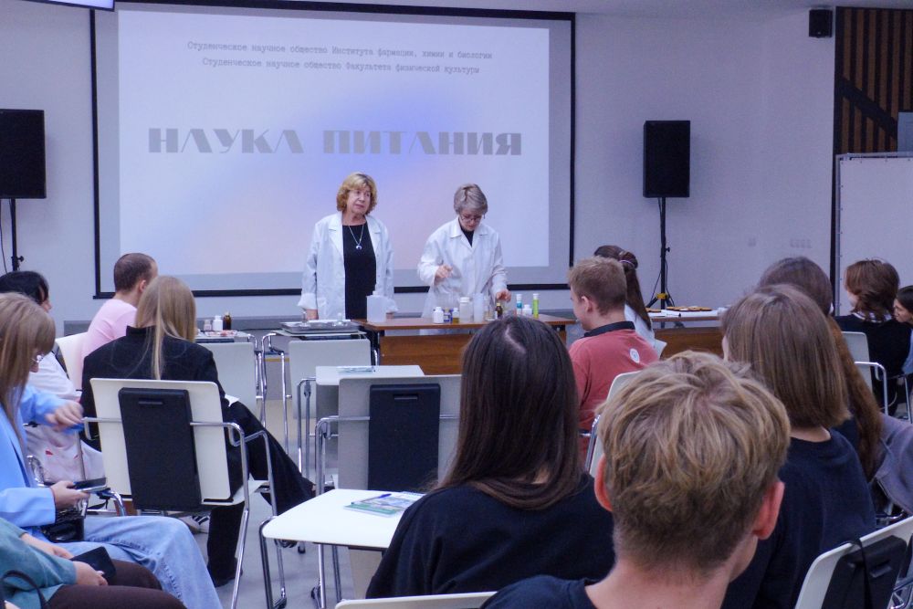 Настоящий междисциплинарный праздник стал возможным благодаря общим усилиям студенческого научного общества института фармации, химии и биологии и СНО Факультета физической культуры. Гостям предстояло участие в трёх образовательных блоках: «Химия на кухне», «Вкусная наука» и «Мозговой штурм».