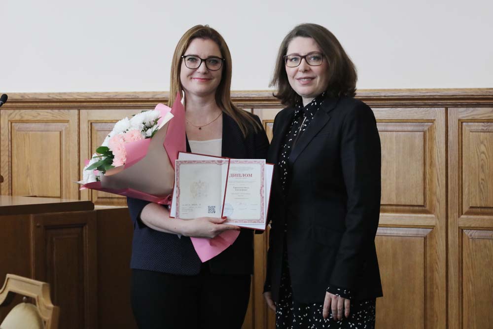 Заседание учёного совета вуза началось с торжественного момента. Ректор НИУ «БелГУ» Евгения Карловская вручила аттестат профессора по научной специальности 3.3.6. Фармакология, клиническая фармакология профессору кафедры фармакологии и клинической фармакологии медицинского института Михаилу Корокину и диплом доктора экономических наук заведующей кафедрой менеджмента и маркетинга института экономики и управления Ольге Герасименко.