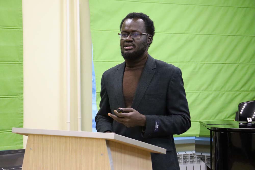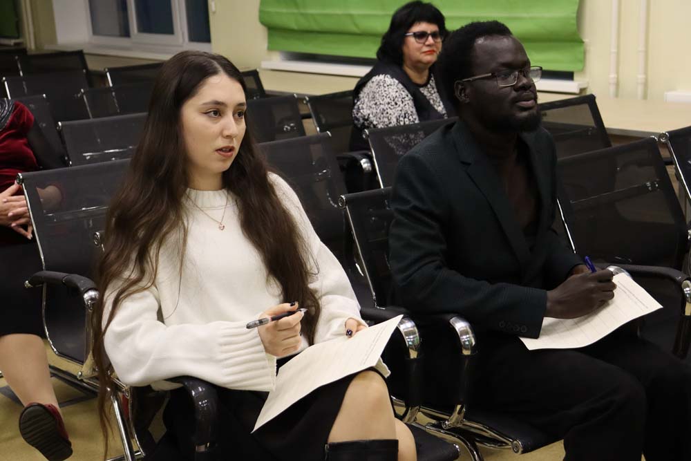 Иностранные студенты – Парра Гомес Мариана Алехандра (Колумбия, педагогический институт), Камба Дата Томас Луджанг (Южный Судан, юридический институт), Франсишку Дилсон Шавьер (Ангола, медицинский институт), Абделгани Айя Реда Каланий (Египет, , медицинский институт), Сантос Седеньо Хесус Антонио (Республика Эквадор, , медицинский институт), Феликс Экселлент Осебхахиемен (Федеральная Республика Нигерия, институт межкультурной коммуникации и международных отношений), Элмира Исмаилова (Туркменистан институт межкультурной коммуникации и международных отношений), Сунь Цинь (Китайская Народная Республика, институт наук о Земле) – участники конкурса иностранных студентов «Мисс и Мистер International – 2025» в рамках конкурса ораторского мастерства познакомили слушателей со своими странами и традициями празднования Международного дня студентов или его аналога. А затем приняли участие в интеллектуальном состязании на знание истории и культуры России, её памятных дат и знаменитых людей. Ведущей и составителем викторины выступила директор Международного информационного центра департамента международного сотрудничества Ольга Лютова. Оценивало конкурсантов справедливое жюри, в состав которого вошли начальник отдела образовательных пространств Научной библиотеки им. Н.Н. Страхова Ольга Анохина, победительница конкурса «Мисс и Мистер International – 2023» Лоайза Солорзано Сильвия Фатима, специалист Международного информационного центра департамента международного сотрудничества Геррейра Перез Сауль Сантьяго, член волонтёрского движения НИУ «БелГУ» Абделльатиф Равда Абдалла, староста землячества Узбекистана Заринахон Маматалиева.