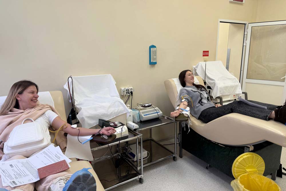 Перед донацией все участники прошли обязательное медицинское обследование, включающее анализ крови и осмотр терапевтом, чтобы убедиться в отсутствии противопоказаний к сдаче крови. После успешного прохождения процедуры доноры смогли восстановить силы в уютном буфете, где для них были подготовлены горячий сладкий чай и выпечка.