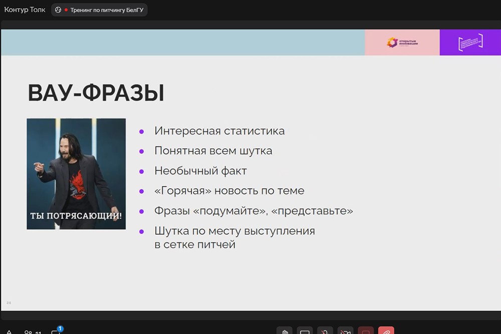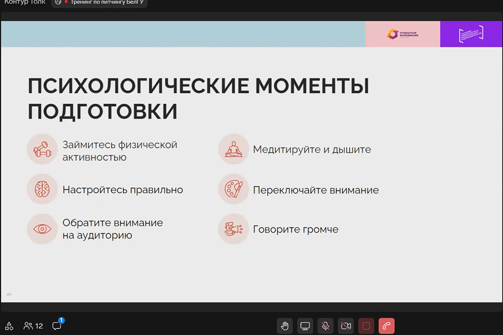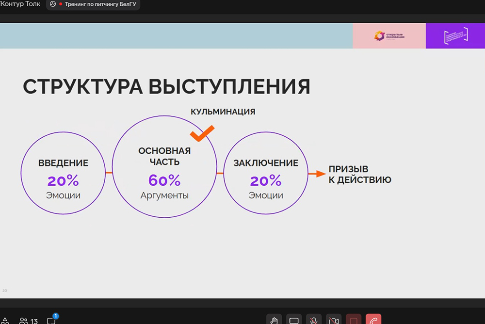 Участники двух акселерационных программ «ТехноPRO+» и HealthPRO+, которые проходят на базе НИУ «БелГУ», вплотную подошли к этапу защиты своих проектных идей. Поскольку для успешного выступления важно учесть много моментов, очередные мастер-классы от приглашённых экспертов посвятили теме публичных выступлений и тонкостям самопрезентации.