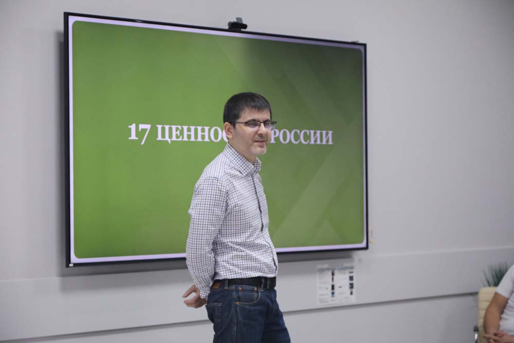 Интерактивную лекцию-тренинг на тему «Ценности и их роль в образовании: аксиологический и политический аспекты» провёл руководитель проекта «Открытая аналитика» Роман Травин.