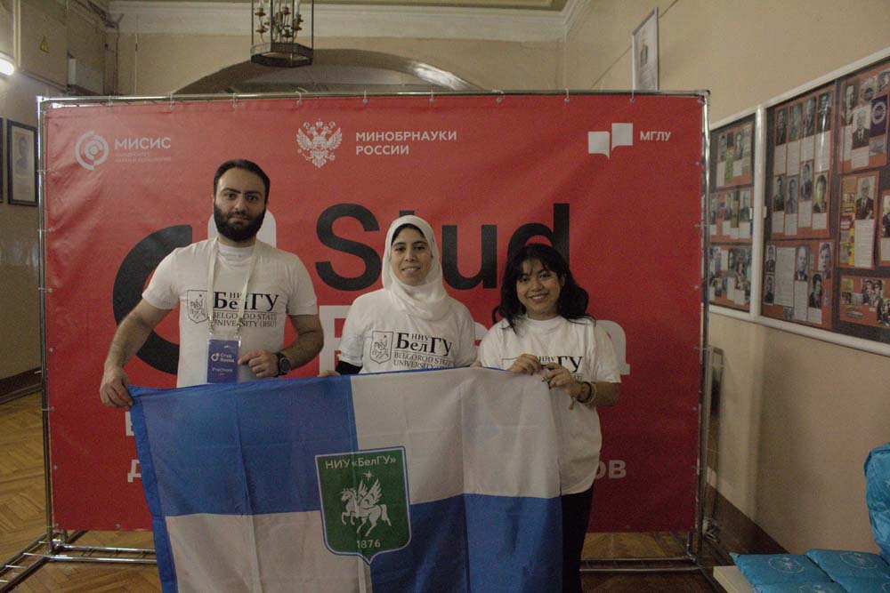 Четыре иностранных студента нашего университета приняли участие в окружном этапе Всероссийского конкурса для иностранных обучающихся «СтудRussia» на базе Московского государственного лингвистического университета. Очный этап собрал 140 иностранных обучающихся со всего Центрального федерального округа. НИУ «БелГУ» представляли Лоайза Солорзано Сильвия Фатима из института межкультурной коммуникации и международных отношений, Фержушия Мериям и Маматалиева Заринахон Аррабой кизи из института инженерных и цифровых технологий и студент института наук о Земле Талджеббинни Абдульраззак. Конкурс проходил в шести номинациях. Талджеббинни Абдульраззак из Сирийской Арабской республики занял третье место в номинации «Добро без границ».