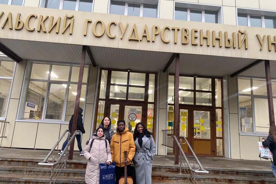 Иностранные студенты института межкультурной коммуникации и международных отношений Али Абакар Али, Олойеде Сильвия Олувафикайоми под руководством директора международного информационного центра департамента международного сотрудничества, доцента кафедры русского языка, профессионально-речевой и межкультурной коммуникации Ольги Лютовой выступили с докладами на III Международной студенческой научно-практической конференции «Русский язык глазами иностранцев», а студенты института инженерных и цифровых технологий Фержушия Мериям и медицинского института Франсишку Дилсон Шавьер – на V Международной научно-практической конференции, посвящённой сохранению Всемирного наследия ЮНЕСКО, которые состоялись в Тульском государственном университете в рамках празднования 95-летия вуза и ХX Международного форума-фестиваля иностранных и российских студентов «Все флаги в гости к нам». Незабываемыми стали вокальные выступления Олойеде Сильвия Олувафикайоми и Франсишку Дилсон Шавьер на гала-концерте Форума-фестиваля.