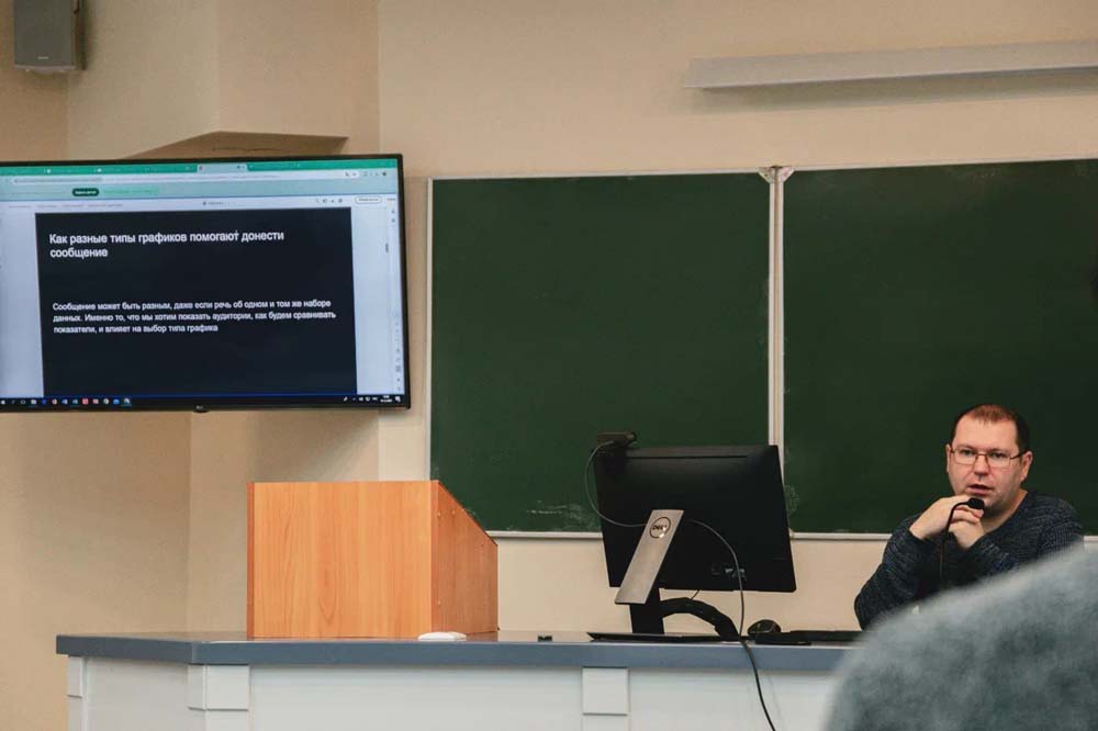 Завершил образовательный день мастер-класс «О чём надо помнить, перед тем, как рисовать график» от эколога и шеф-редактора «Т–Ж» Сергея Антонова. В фокусе оказался ключевой навык XXI века – способность честно и убедительно визуализировать данные. Участники научились избегать манипулятивных приёмов, выбирать корректные типы диаграмм и создавать графики, которые не искажают, а проясняют истину – будь то в научной работе, журналистике или публичном выступлении.