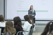 С приветственным словом к участникам мероприятия обратилась и.о. заведующего кафедрой инновационной экономики и финансов Наталья Быканова, отметившая вклад студентов в развитие финансовой культуры и активное участие в университетских и внешних проектах индустриальных партнёров вуза.