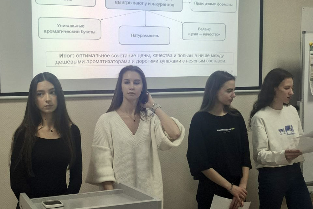 Студенты презентовали свои проекты в различных профилях и ролях (Исследователь. Управленец. Предприниматель). Междисциплинарный проект «Разработка ароматерапевтических композиций на основе эфирных масел растений Белгородской области с целью создания средств, обладающих различными эффектами» представили студенты института фармации, химии и биологии и юридического института – Виктория Мироненко, Анастасия Михайлова, Кристина Подпорина и Дарина Покутнева.