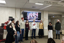 Участники праздничного вечера совершили виртуальное путешествие по странам мира, наслаждаясь популярными рождественскими и новогодними песнями и стихами на русском, английском, китайском, немецком, французском, испанском и японском языках.