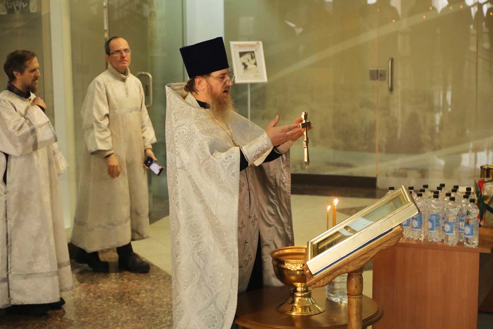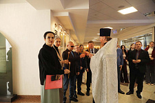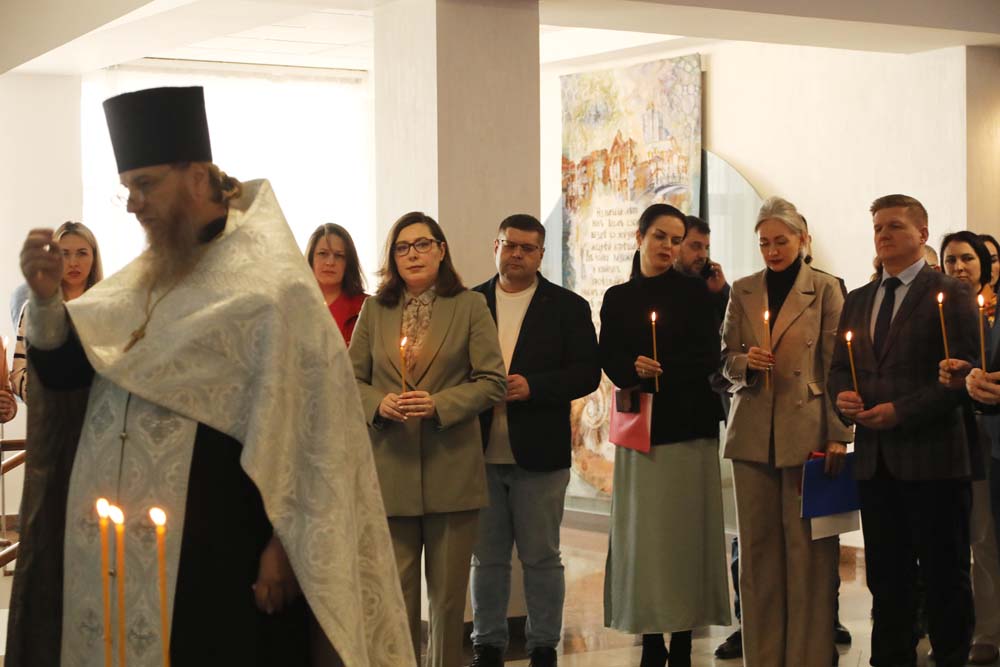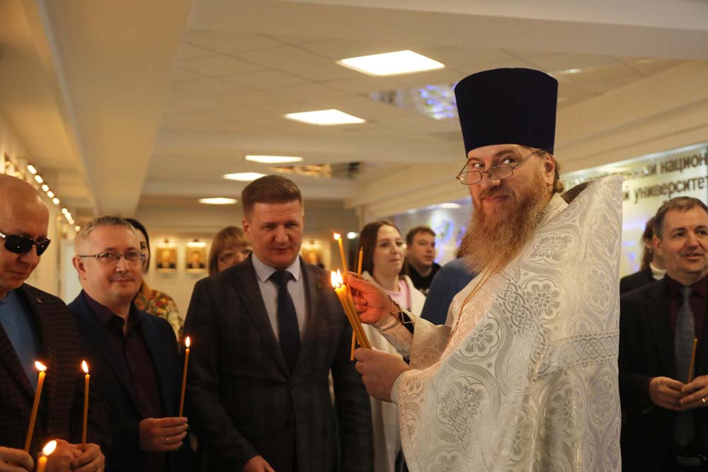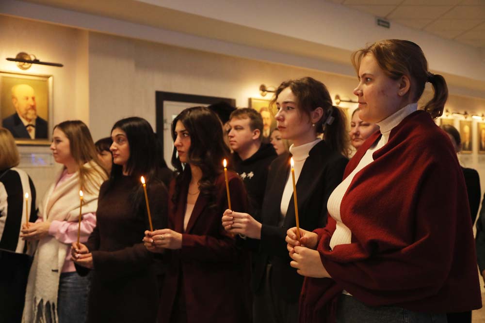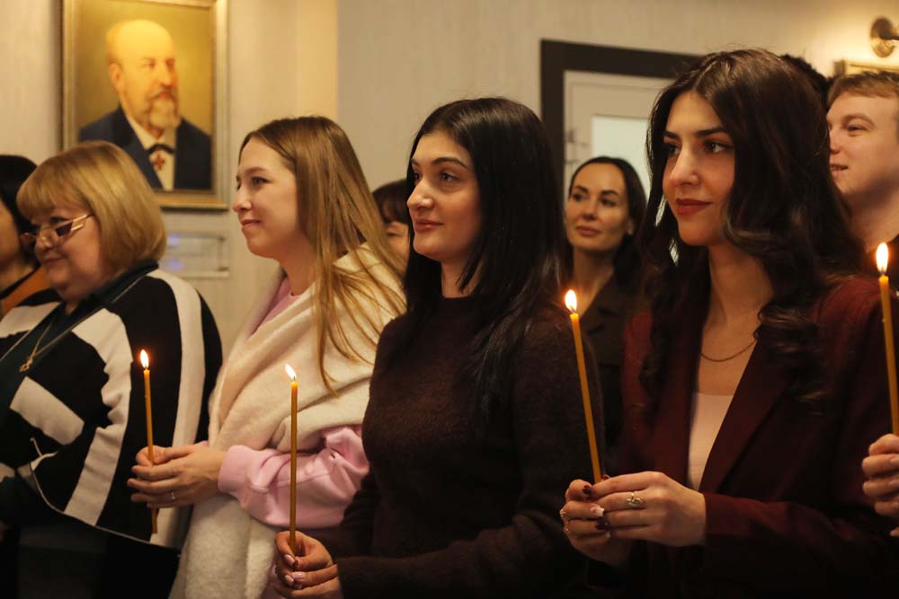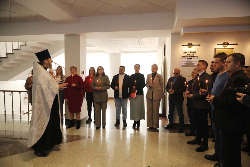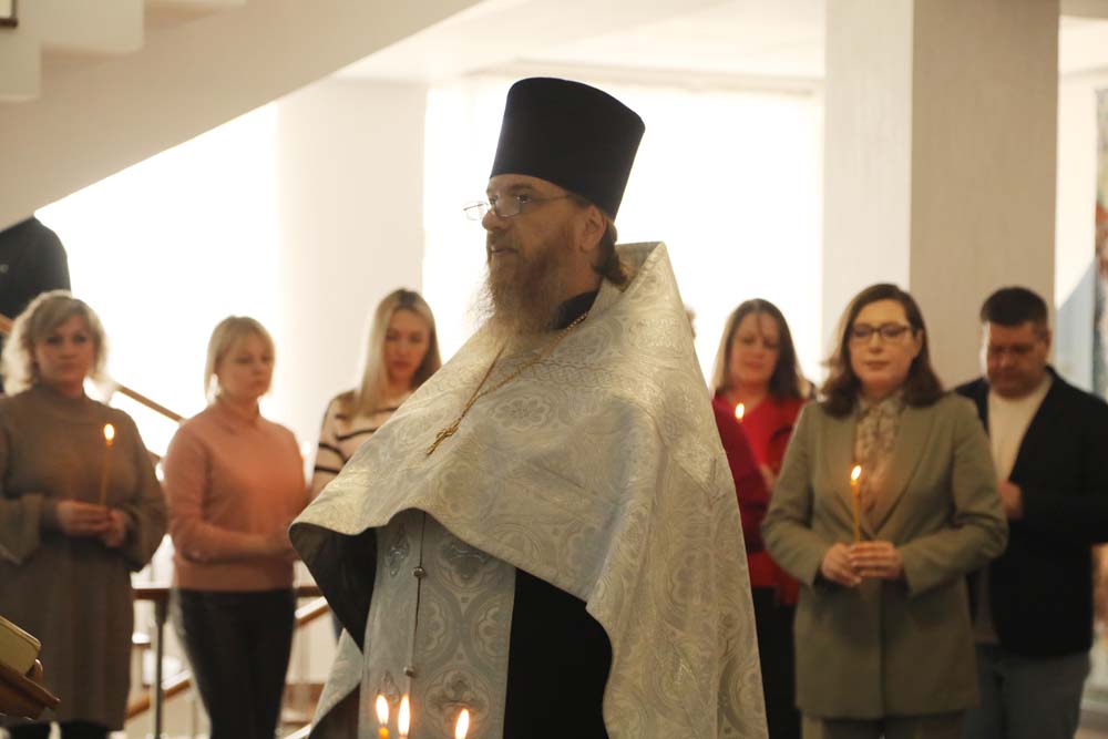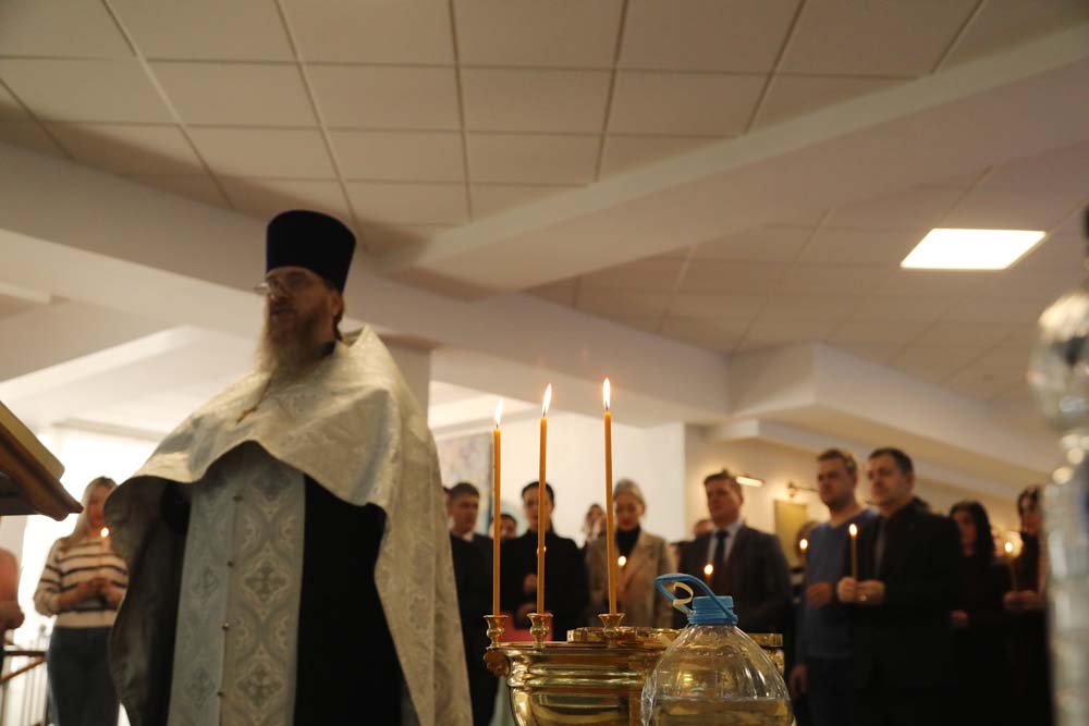 В храме Архангела Гавриила настоятель – протоиерей отец Роман провёл Божественную литургию, а в холле главного корпуса вуза – молебен для сотрудников и обучающихся.