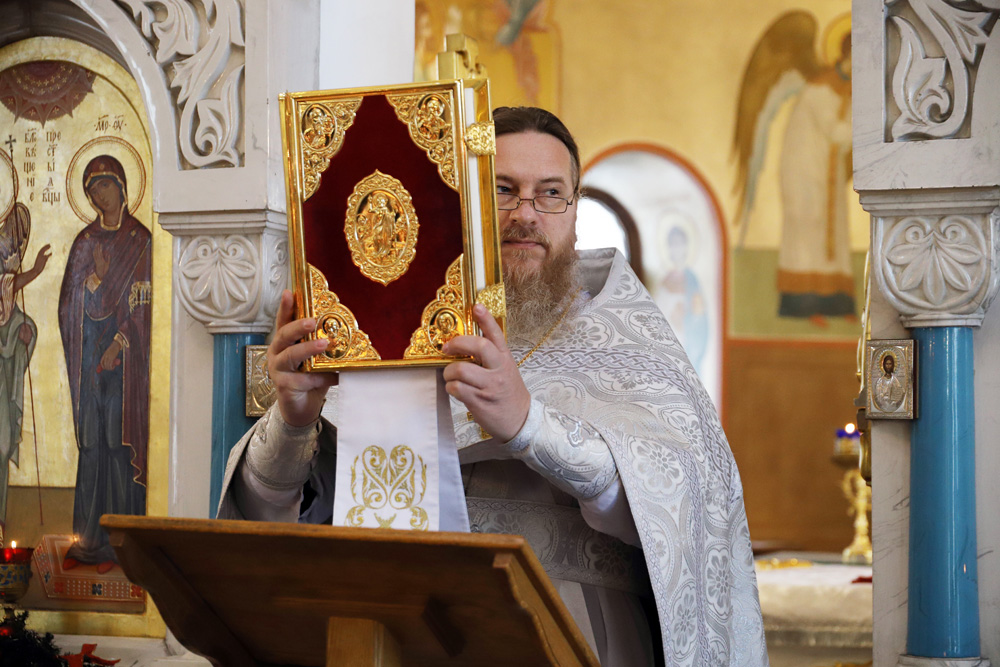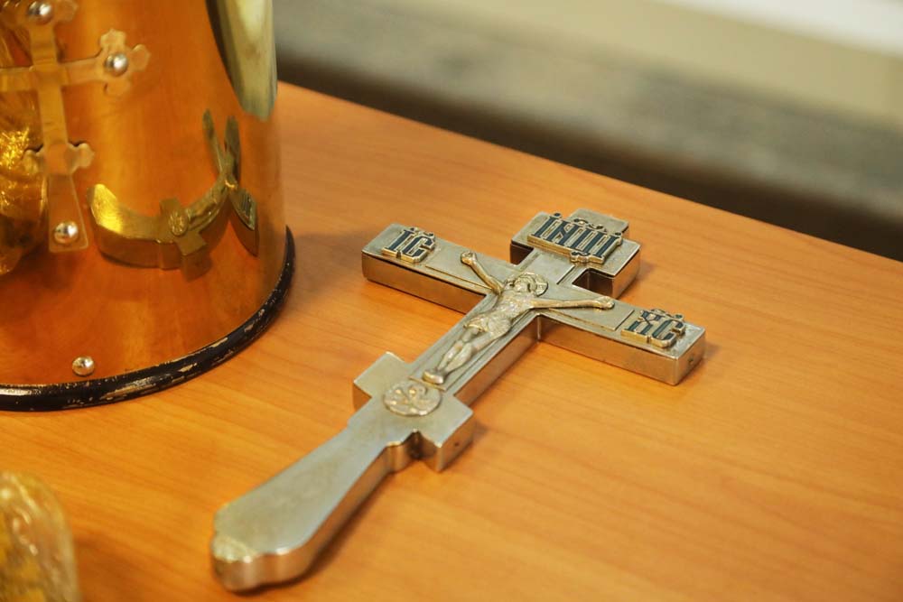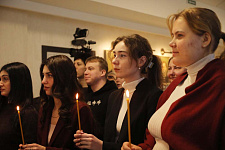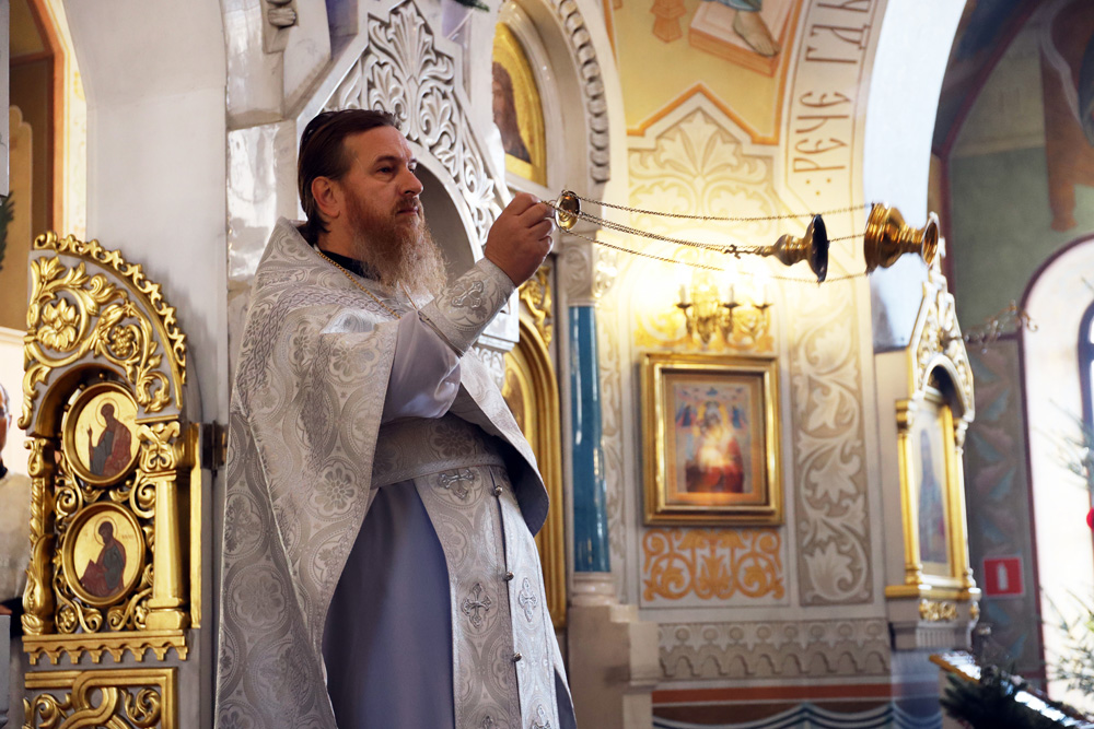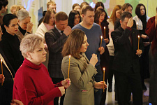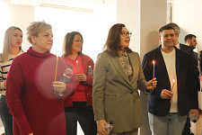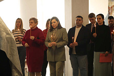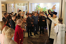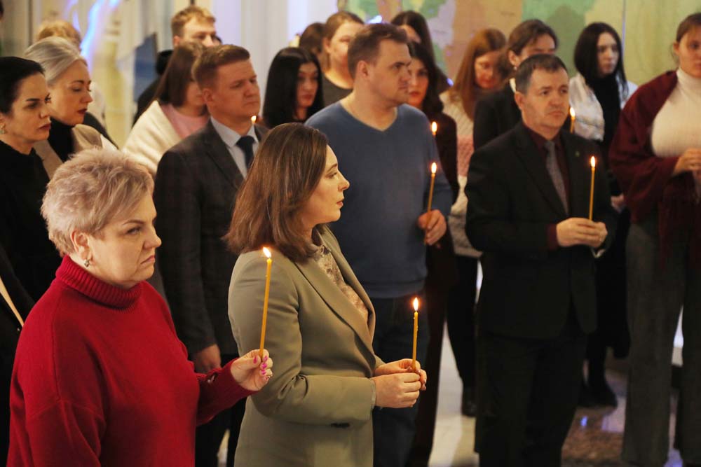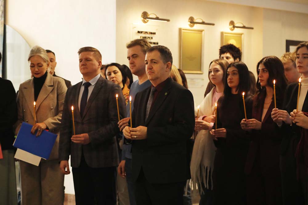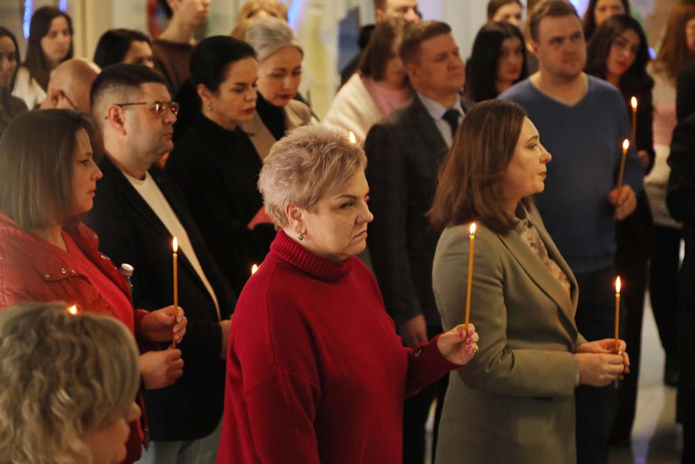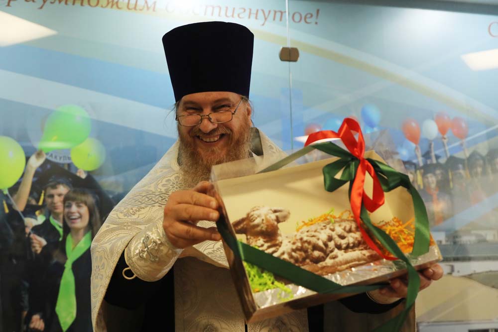 В храме Архангела Гавриила настоятель – протоиерей отец Роман провёл Божественную литургию, а в холле главного корпуса вуза – молебен для сотрудников и обучающихся.