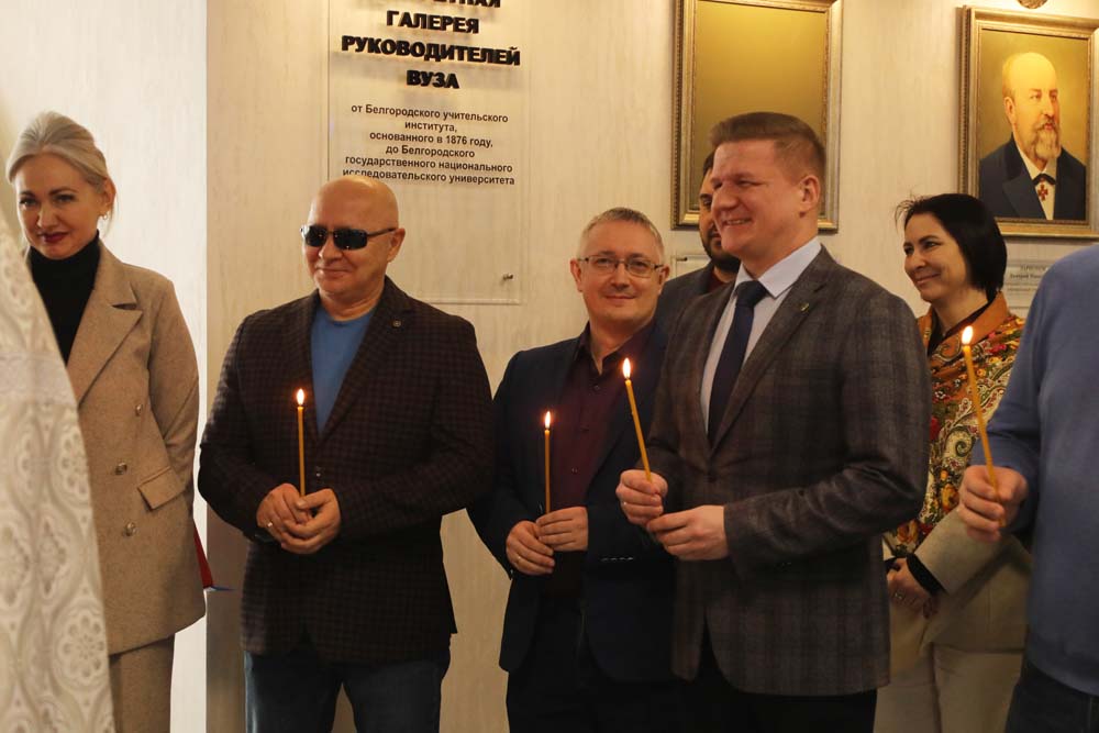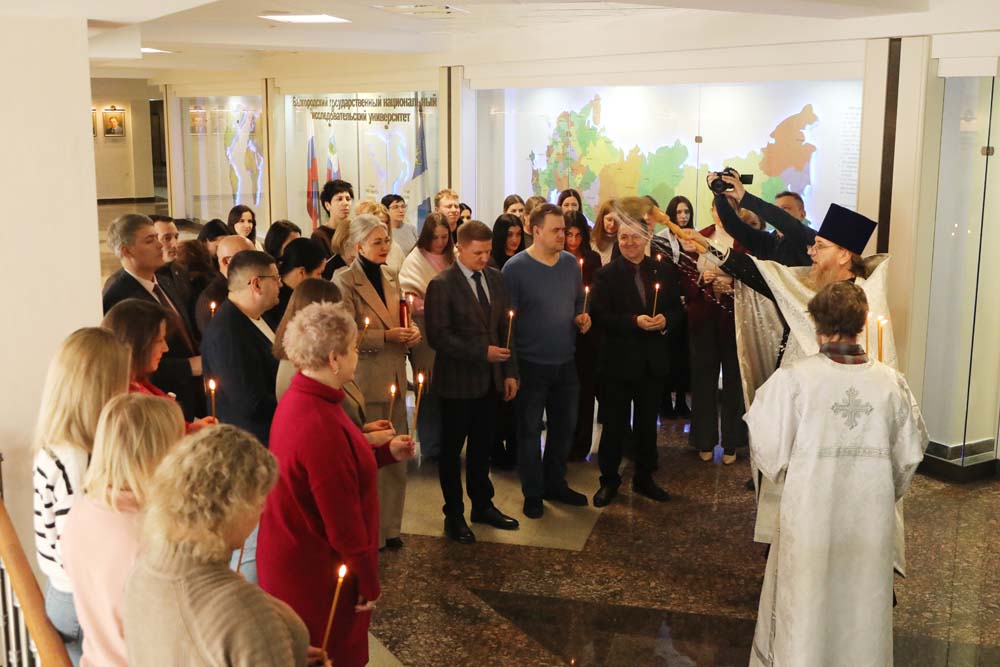 В холле главного корпуса вуза, где собрались сотрудники, руководители подразделений, представители ректората во главе с ректором Евгенией Карловской и студенты, настоятель домового храма НИУ «БелГУ» провёл молебен, поздравив собравшихся с праздником, и окропил присутствующих святой крещенской водой.