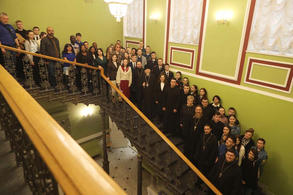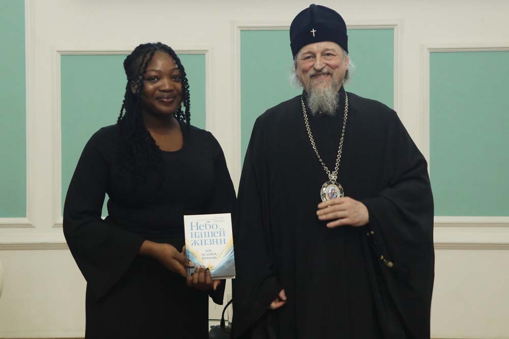 В завершении встречи митрополит выразил слова благодарности ректору университета за помощь в организации встречи со студенческой молодёжью. А за самый интересный вопрос вручил подписанную им книгу с пожеланиями студентке ИМКиМО Сильвии из Нигерии.
