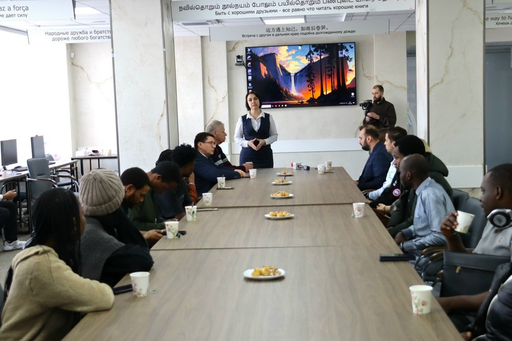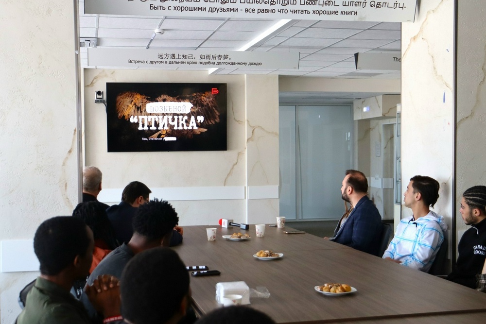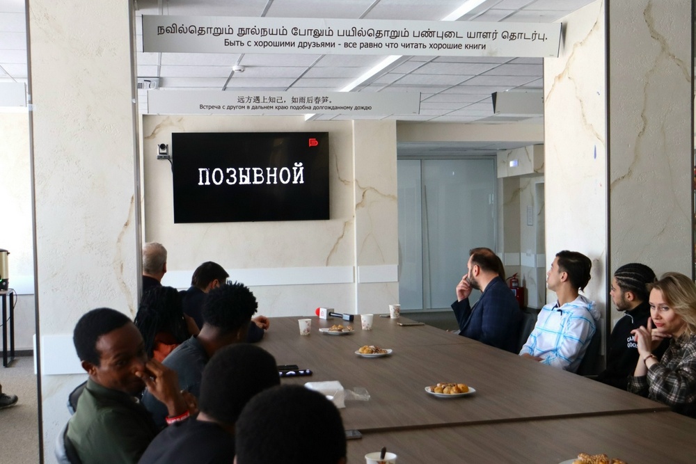 Урок мужества собрал в Центре дружбы народов сотрудников НИУ «БелГУ» и студентов из России, Алжира, Анголы, Буркина-Фасо, Египта, Индонезии, Камеруна, Марокко, Нигерии, Туркменистана, Узбекистана, Чада, Эквадора.