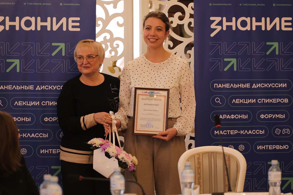 Завершающим пунктом повестки мероприятия стало награждение: Благодарственное письмо Главного федерального инспектора по Белгородской области получил лектор РО «Знание», старший преподаватель кафедры международных отношений, зарубежного регионоведения и политологии НИУ «БелГУ» Роман Травин, Благодарность заместителя Губернатора – министра образования Белгородской области – менеджер филиала РО «Знание» в Белгородской области, магистрант ИОНиМК НИУ «БелГУ» Полина Мусаева.