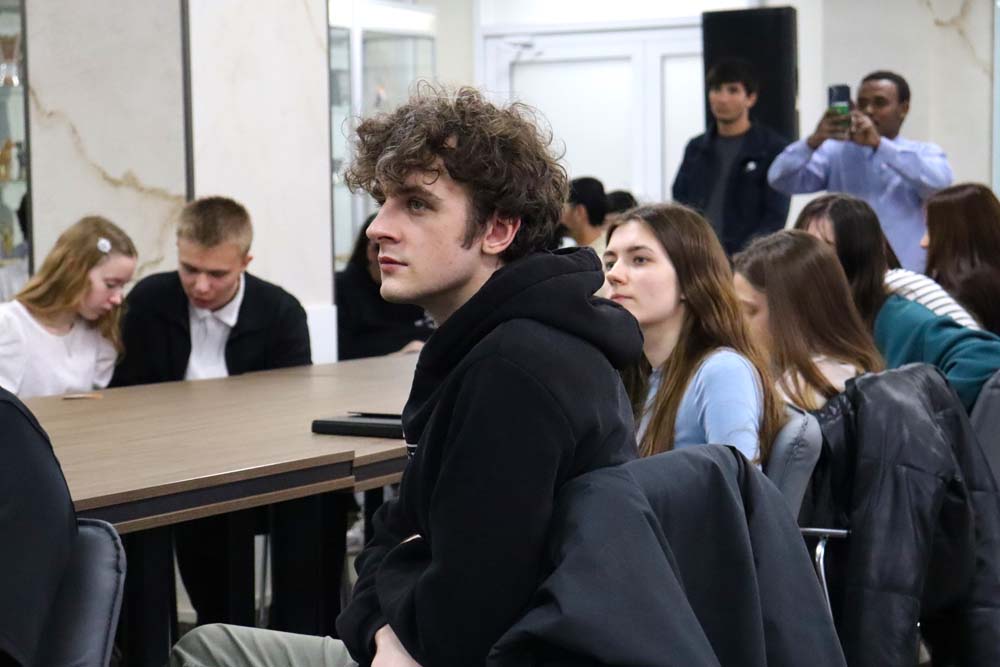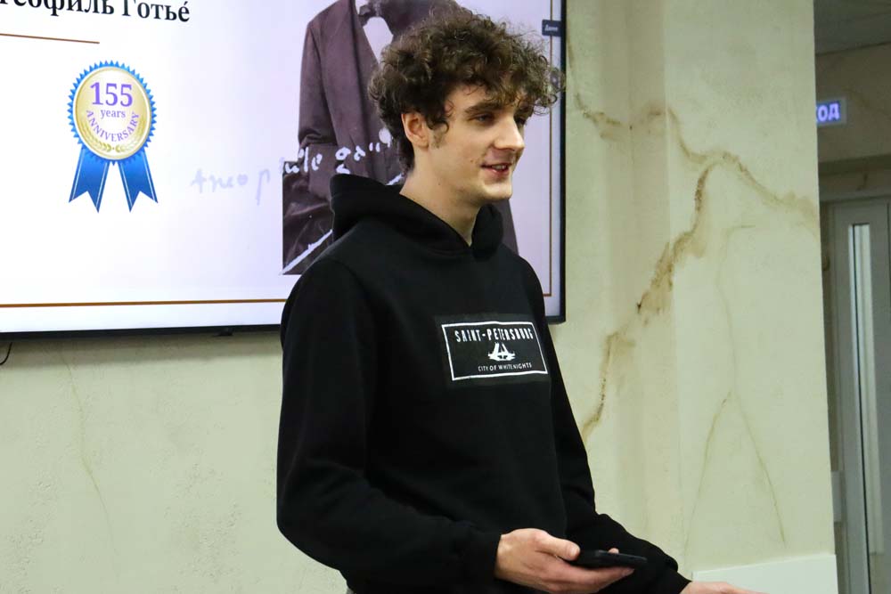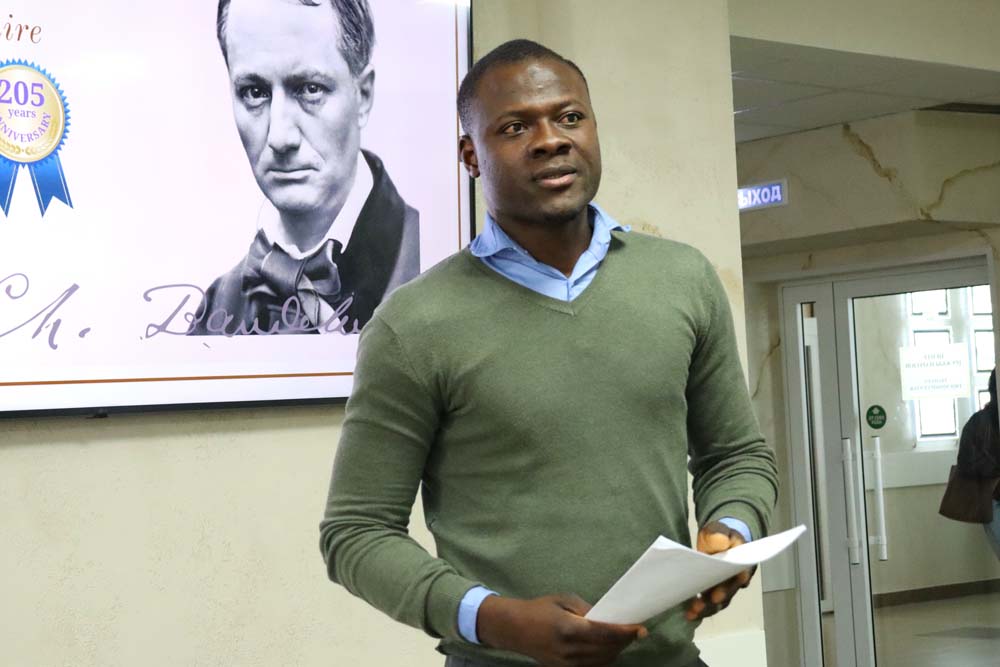 Ведущим вечера выступил стажёр международного информационного центра департамента международного сотрудничества, студент института межкультурной коммуникации и международных отношений Сану Ибрагим Ромуальд, который в завершение встречи, прочитав стихи собственного сочинения по-французски и представив их перевод на русский язык, пригласил всех желающих стать участниками Международного конкурса перевода студенческих поэтических текстов «Цветы под стеклом». Конкурс завершится чествованием участников и победителей во Всемирный день книги 23 апреля.