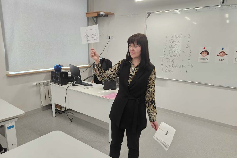 Преподаватели и студенты кафедры познакомили учащихся 9, 10 и 11 классов с четырьмя иностранными языками. На мастер-классе Светланы Слепцовой школьники познакомились с французским языком, научились знакомиться по-французски и узнали, какие французские слова успешно перешли в русский язык. Под руководством Инны Акиншиной участники мастер-класса выполнили аудирование песни на немецком языке. В ходе мастер-класса по английскому языку студентки четвёртого курса Анны Демидовой школьники попробовали себя в переводе молодёжного сленга. А студенты первого курса Полина Лаврова и Элеонора Самолекина подготовили и провели мастер-класс по китайскому языку. К его завершению участники научились приветствовать друг друга, знакомиться и прощаться на китайском языке, а также выучили числовые жесты.