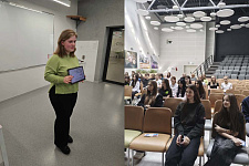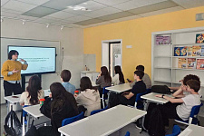 В рамках профориентационных образовательных событий Педагогическая профессиональная школа НИУ «БелГУ» продолжила сотрудничество с Гимназией №5 в Белгороде. Встречу с учащимися десятых классов выступила ассистент кафедры английского языка и методики преподавания Елизавета Стронина.