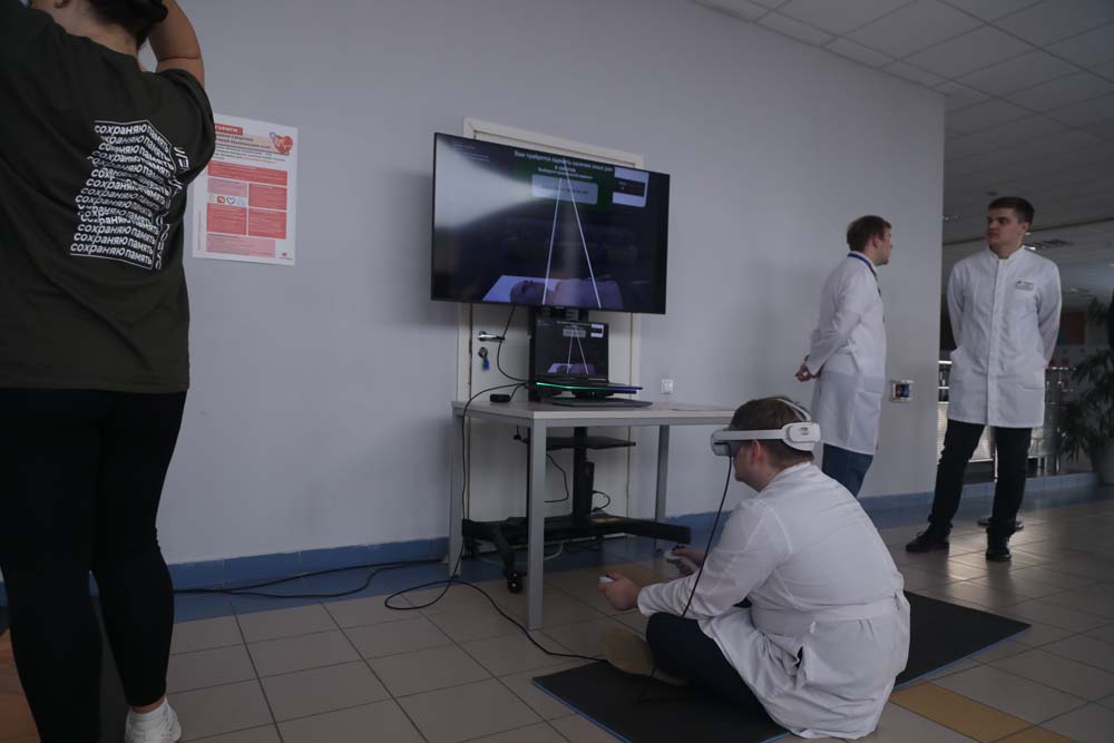 Отдельное внимание уделено VR-тактической медицине. Участники при помощи тренажёров осваивают практические навыки оказания неотложной медицинской помощи. Помогают им в этом студенты медицинского института, волонтёры-медики.