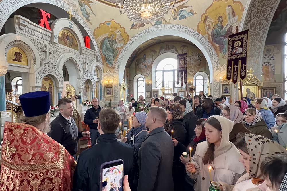 В день Светлой Пасхи, 12 апреля, университетский домовой храм Архангела Гавриила стал местом особой духовной радости. В гости к студентам и сотрудникам НИУ «БелГУ» приехал глава администрации города Белгорода Валентин Демидов, чтобы лично передать Белгородскому госуниверситету Благодатный огонь, сошедший накануне в иерусалимском храме Гроба Господня.