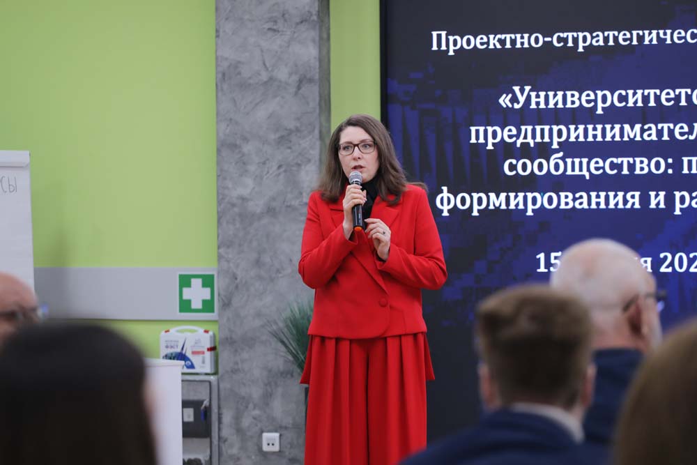 В проектно-стратегической сессии «Университетское предпринимательское сообщество: пути формирования и развития» приняли участие представители и руководители разных подразделений и профессиональных школ вуза.