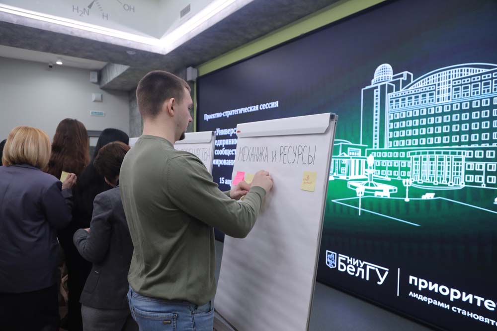 В Белгородском госуниверситете прошла проектно-стратегическая сессия сессии «Университетское предпринимательское сообщество: пути формирования и развития». В роли ведущей выступила руководитель Естественнонаучной профессиональной школы НИУ «БелГУ» Ульяна Круть. Модерировала мероприятие команда департамента развития персонала под руководством его директора Дмитрия Сазонова.