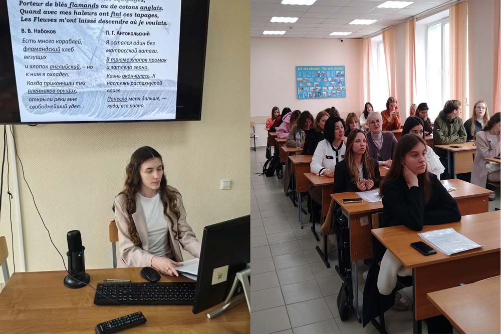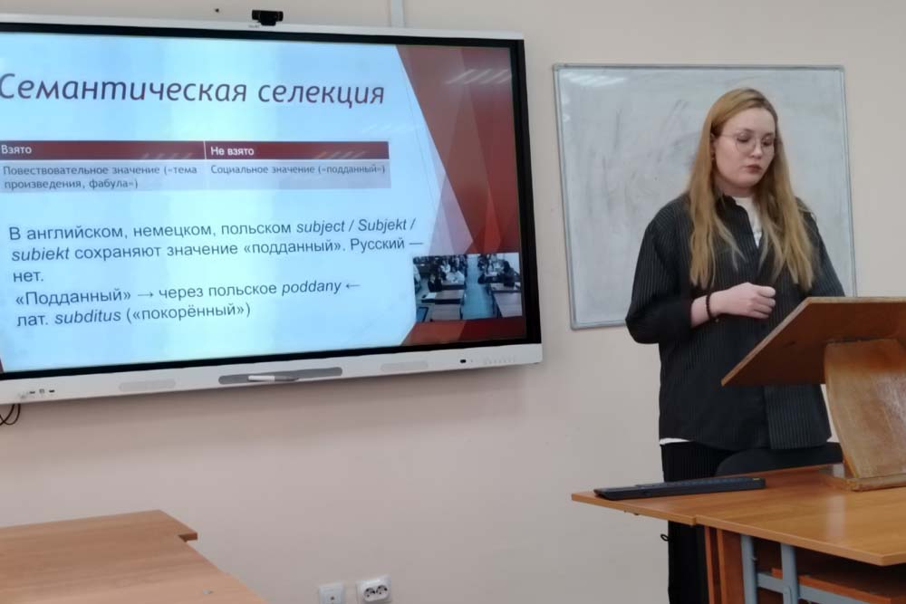 Продолжился весенний научный марафон ежегодной конференцией студентов и аспирантов «Векторы развития языка в условиях глобализации и проблемы методики преподавания». На пленарном заседании и в трёх секционных залах – теоретической и прикладной лингвистики, немецкого и французского языков – участники представили доклады о семантической трансформации лексики, динамике языковых норм в глобальном мире, функционировании лингвокультурем в медиадискурсе разных стран. Традиционно много внимания уделили переводу: обсуждались способы адекватной передачи сленга, фразеологизмов, реалий и поэтических текстов. Отдельный интерес вызвали сравнительно-типологические исследования фразеологических систем разных языков. Заведующая кафедрой романо-германской филологии и межкультурной коммуникации Оксана Кузьмина выразила особую благодарность научным руководителям, чья поддержка и вовлечённость помогают молодым исследователям достойно представлять свои идеи. Особенностью этой конференции также стало участие школьников, представивших работы в области невербальной коммуникации.