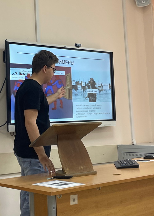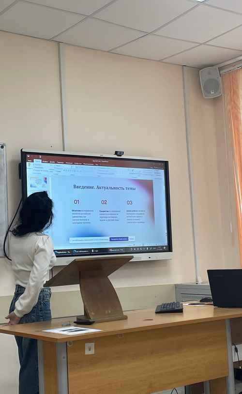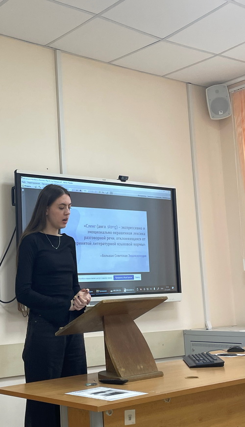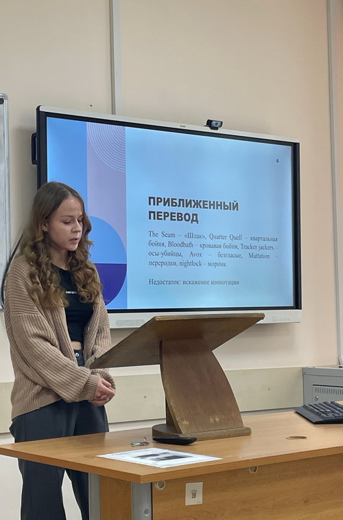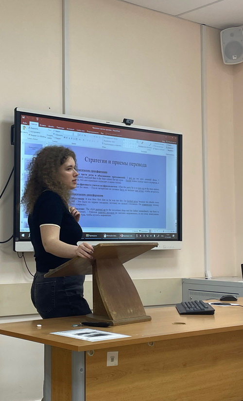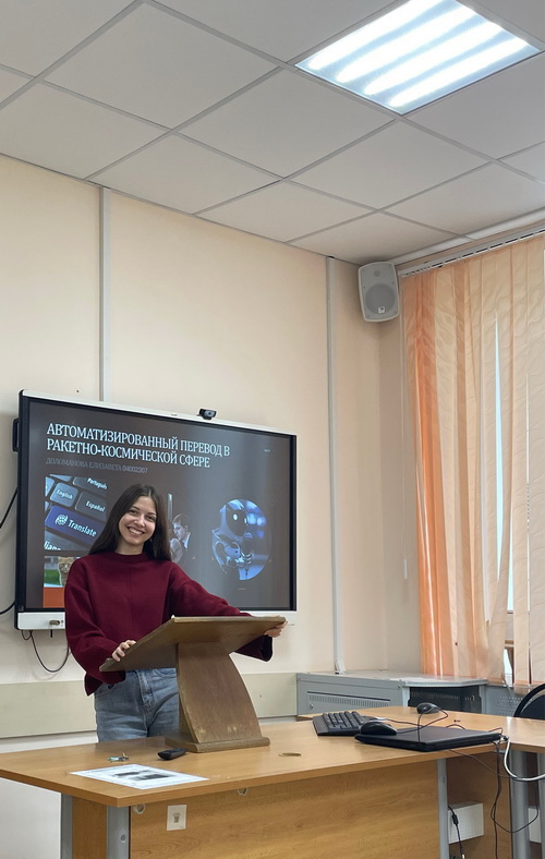 Студенты группы 04002307 выступили с докладами, в которых под руководством старшего преподавателя Купцовой Юлии Анатольевны они отразили результаты своих научных исследований в области теории и практики перевода. Был изучен широкий круг вопросов, среди которых: особенности и проблемы перевода текстов научного стиля, фразовых глаголов, идионимов, безэквивалентной лексики, субтитров, молодежного сленга, машинного перевода, фразеологизмов, автоматизированного перевода в ракетно-космической сфере. Все доклады участников были содержательны, познавательны, соответствовали теме круглого стола, сопровождались интересными презентациями.
