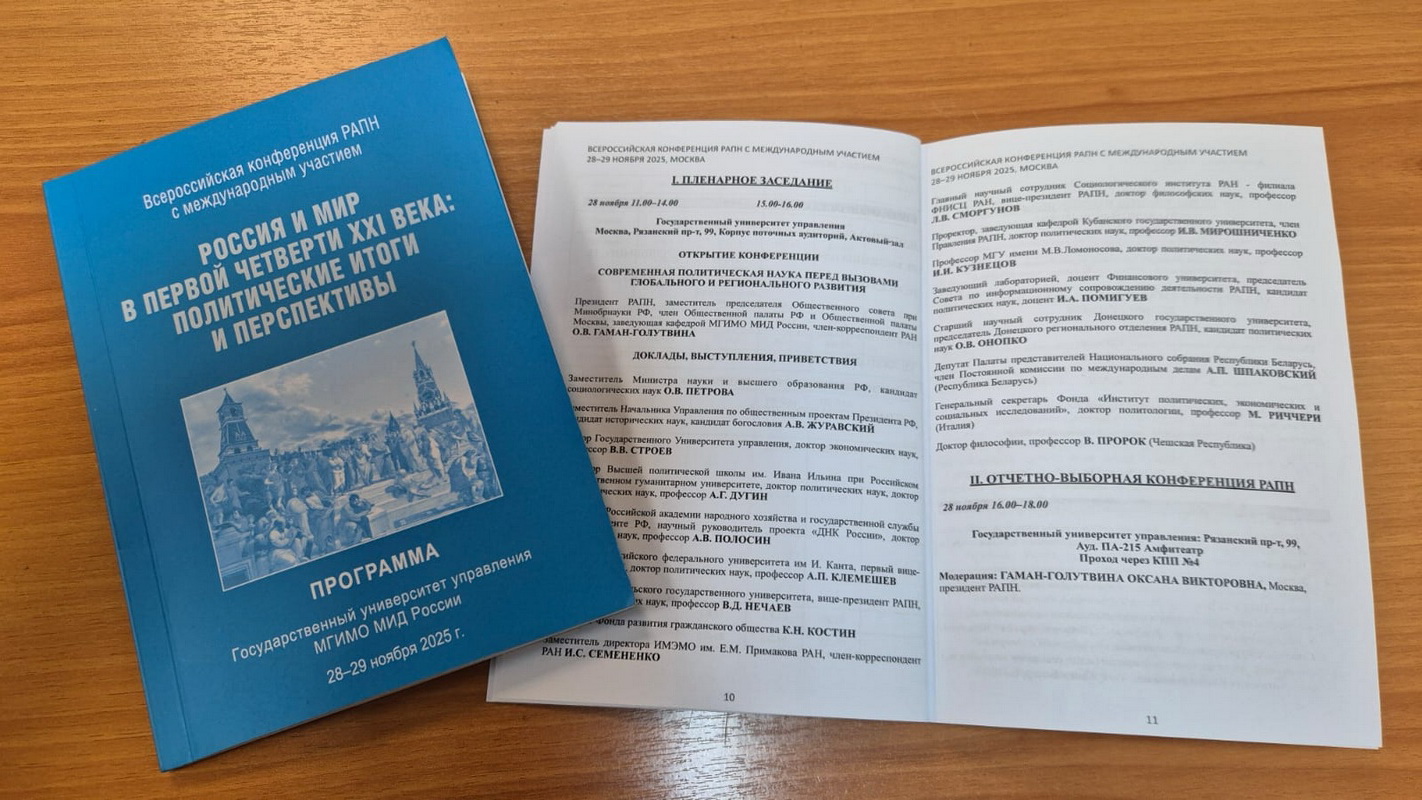 Преподаватели кафедры международных отношений, зарубежного регионоведения и политологии Алла Кривец, Ирина Гукова и Ольга Тимошкова приняли участие в работе исследовательских комитетов и круглых столов научной конференции РАПН, посвященных теории и методологии политической науки, ценностным аспектам современной политической науки, проблемам использования искусственного интеллекта в управлении человеческим капиталом, вопросам современной мировой политики и роли России в мире.